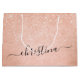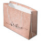 Design de um saco de compras de papel personalizado, elegante, com rosa de ouro de cobre falso gradiente, textura falsa e letra elegante de caligrafia. Personalize o produto com um nome ou qualquer outro texto.