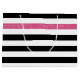 Personalize este moderno e horizontal padrão de listras brancas e pretas saco-presente de tamanho grande com uma risca rosa brilhante, como uma ladeira, adicionando o nome da garota da festa. Este padrão gráfico de tendência é perfeito para a moda chic. Imagem impressa plana, NÃO brilho real.