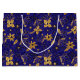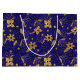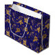 Sacola Para Presentes Grande Gold and Blue Christmas Poinsettia Flowers