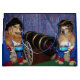 Este saco do presente caracteriza os retrievers dourados vestidos como bateristas coloniais do soldado com um canhão que dispara fora dos fogos-de-artifício patrióticos. Este saco seria perfeito para o algum presente de 4o julho/Dia da Independência.
