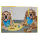 Este saco do presente caracteriza os retrievers dourados que jogam um jogo do dreidel para Hanukkah. Um ouro é o campeão do dreidel e os lotes ganhados do gelt. Isto faria um grande saco para dar dentro todo o presente de Hanukkah.
