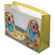 Sacola Para Presentes Grande Golden retriever que joga Dreidel Hanukkah