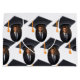 Balões com placas para parabéns de graduação na frente. Sua foto de formatura foi tirada com um quadro na folha central. Balões com placas de morteiros para parabéns de graduação com ano de aula atrás.