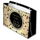 Adicione um toque pessoal ao seu presente. Um belo saco de presentes com preto e ouro divertidos, embelezamentos de ouro elegantes e nome do formando.