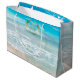 Grande Bag de presentes | Casamento Geométrico de Praia do Monograma Moderno | Uma reviravolta moderna sobre o Casamento de Praia - Casamento Único concebido para a Noiva Barefoot™ por ©WhimsicalArtwork™ Uma abordagem lúdica da tipografia no texto - com as iniciais de nome Bride e Groom cercadas por uma coroa de louros em cima - em duas cores (teal e ouro) - uma design de praia tropical em frente e trás. - se precisar de ajuda, sinta-se à vontade para me contactar.
