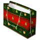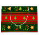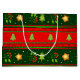 Apresente seus presentes em estilo! Perfeito para presentes festivos, este Grande Saco do Presente, com grandes listras horizontais vermelhas e verdes, embelezado com árvores de Natal verdes, flores vermelhas com folhas verdes e estrelas douradas bonitinhas, vai adicionar uma explosão de cor ao seu presente. Esta é uma ótima maneira de apresentar qualquer surpresa especial neste Natal!