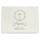 A grinalda azul e verde desta primavera da folha iluminará sua celebração. Este design está em um fundo do creme claro, decorado com uma cruz cinzenta bonita. Aperfeiçoe para o primeiro comunhão santamente da sua criança o baptismo ou. Verifique para fora os acessórios, os presentes, os favoritos para festas e os artigos de papelaria de harmonização.