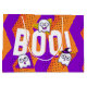 Celebrate a cute and spooky holiday with this Halloween-themed gift bag featuring orange and purple stripes, cute ghost characters, and the word "BOO!" on the front and back. This giftbag is perfect for a Halloween party, birthday, or any occasion to share a Halloween themed gift. Characters are cute, sweet, and sure to bring a smile to any child or adult's face.