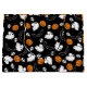 Design com fantasmas, morcegos, abóboras e crânios.