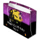 Essa bolsa de presente divertida e assustadora pode ser personalizada com um nome ou título, como filha, neta, sobrinha, amiga etc. Ele apresenta uma bruxa bonita ao lado de uma casa assombrada. Ao fundo está uma lua de cheio com morcegos e um céu noturno roxo com estrelas. O texto combina fontes decorativas e serif para um aspecto na moda e moderno. Isto é perfeito para o Halloween.