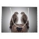 Foto de um falcão em um posto que foi convertido para se parecer com dois falcões olhando um para o outro. É um gavião-cauda-vermelha na natureza. Esta foto foi tirada e melhorada por Debbie Quick of Debs Creative Images. Para ver mais fotografias por Debbie, visite o seu site: www.debscreativeimages.com