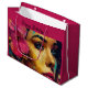 Sacola Para Presentes Grande Hibiscus rosa-negrito e Retrato Abstrato feminino