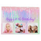 Para um aniversário de 16 anos (ou qualquer idade) feminino e glamouroso. Um arco-íris, fundo holográfico colorido com pingos cor-de-rosa e roxo, pintura pingando. Personalize e adicione 3 fotos e 16 anos/texto.