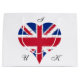 Esta design apresenta uma bandeira pintada, ligeiramente angustiada, em forma de coração do Reino Unido, e coloca as palavras I e UK para indicar a frase que amo o Reino Unido ou I Heart UK.