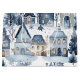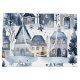 Esta design parece uma paisagem mágica de inverno. Um lugar onde cada casa tem uma história. Talvez um pertença a uma família que decora a árvore, outro a crianças que brincam perto do fogo, outro a vizinhos que se reúnem para cursinhos de férias. Ele conta a história da comunidade, conforto e alegria compartilhada no meio da rigidez do inverno. Ao repetir as casas e as árvores como um padrão em camadas, a design sugere que esse sentimento é interminável, continuando por toda a vila nevada.