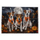 Libere o espírito assustador com esta design sombria do Dia das Bruxas apresentando um bando de cachorros sob um céu escuro e iluminado, cercado por morcegos voadores e abóboras brilhantes. Perfeito para aqueles que amam um toque de diversão terrível com seus amigos peludos!