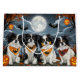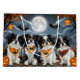Libere o espírito assustador com esta design sombria do Dia das Bruxas apresentando um bando de cachorros sob um céu escuro e iluminado, cercado por morcegos voadores e abóboras brilhantes. Perfeito para aqueles que amam um toque de diversão terrível com seus amigos peludos!