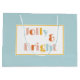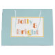 Este saco de presentes de Natal apresenta a mensagem "Jolly and Bright" sobre um fundo azul claro e sólido. As letras estão em uma fonte divertida retrô-moderna com cada letra uma cor de coordenação diferente. Esta bolsa de presente de Natal faz parte da nossa coleção de Natal "Jolly and Bright". Para ver variações desta bolsa, bem como papel de tecido correspondente, etiquetas de presentes, papel de embalagem e muito mais, veja a coleção nesta página.