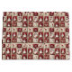 Neves sorridentes, alegres, flores e flocos de neve em quadrados bronzeados e vermelhos em um fundo bronzeado criam um saco de presentes bonitinho com uma aparência rústica e country. Muito fofo, e perfeito para todos os presentes de férias.