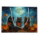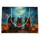 Libere o espírito assustador com esta design sombria do Dia das Bruxas apresentando um bando de cachorros sob um céu escuro e iluminado, cercado por morcegos voadores e abóboras brilhantes. Perfeito para aqueles que amam um toque de diversão terrível com seus amigos peludos!