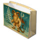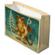 Adicione desejos perversos de inverno a seu presente com este ousado saco de presentes Krampus! Apresentando um majestoso Krampus de cabelos brancos com chifres, asas, e cauda parado orgulhosamente em uma maravilha nevada sob um céu noturno estrelado, lua crescente e cometa de passar. É perfeito para aqueles que preferem um pouco de malícia com o seu malfeto. Quer você esteja abraçando seu lado negro ou espalhando vibrações de alternativo feriado, este saco de presentes é uma maneira impressionante de dizer "feriados felizes" com uma reviravolta.