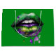 SACOLA PARA PRESENTES GRANDE LÁBIOS MARDI GRAS NO VERDE DOURADO PURPER
