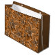 Sacola Para Presentes Grande Laranja, cinza, flores aquáticas.
