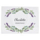 Fundo branco. Decorado com flores lavandas e eucalipto verde. Personalize e adicione o nome de sua ponte.