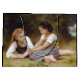 O sol quente do outono passou pelas folhas da avelaneira, lançando sombras dançantes no chão da floresta. Duas jovens, Elise e Juliette, sentaram-se debaixo dos seus ramos, uma pequena pilha de loucos ouros aninhados entre as folhas caídas. - Elise, a anciã dos dois, inclinou-se contra o latido áspero da árvore, um tom malicioso nos olhos. Ela segurou um punhado de loucos rasgados sobre a cabeça de Juliette. "Tente pegá-los, petite souris!" ela fugiu, espalhando os loucos com um riso encantador. - Juliette, um turbilhão de movimento, perseguida depois dos loucos em queda, seu riso ecoando pela floresta. Ela esfregou um punhado, seu rosto escorrendo com esforço e prazer. "Você é impossível, Elise!" ela exclamou, sua voz sem fôlego. Elise resplandeceu-se, seus olhos brilhando nas esquinas. "Essa é a ideia, petite da mãe!" ela retorquiu, jogando mais alguns loucos no ar. - Eles tropeçavam e rolavam entre as folhas, seus risos misturavam-se com o gentil afundamento das árvores. Por um momento, o mundo parecia encolher apenas para os dois, perdidos em seu próprio jogo privado. - Juliette, pegando seu fôlego, olhou em volta para a filtragem de luz solar aplicada através das folhas. "É tão bonito aqui", ela suspirou contente. "Queria que pudéssemos ficar aqui para sempre." - Elise acenou, olhando para cima na cobertura das folhas. "Eu também", ela admitiu. "É como um jardim secreto." - Eles se calaram, contentes na companhia um do outro e na tranquilidade pacífica da floresta. Elise, sempre que sonhadora, começou a imaginar o que eles fariam com seus tesouros. "Talvez pudéssemos assá-los sobre o fogo", ela se divertiu, "e contar histórias a noite toda." - Os olhos de Juliette se alargaram. "Ou talvez pudéssemos fazer um colar para Grand-mère," ela sugeriu, sua voz cheia de entusiasmo. "Ela adora colares de avelã." - À medida que o sol começou a mergulhar abaixo do horizonte, lançando longas sombras pelo chão da floresta, as meninas retomaram suas loucos relutantemente e começaram a chegar em casa. Eles caminhavam de mãos dadas, suas risadas desaparecendo à distância, deixando atrás de um rastro de folhas de ouro e o odor persistente do outono. - O bosque, uma vez vivo com sua brincadeira, voltou ao seu humor pacífico, o único som que o suave sussurro do vento através das árvores. Mas a memória de seu riso, como o cheiro da fumaça, permaneceu muito tempo depois de ter desaparecido, lembrando as simples alegrias da infância e a magia duradoura de um segredo compartilhado. - Les Noisettes ou The Nut Gatherers é uma pintura a óleo de 1882 do artista francês William-Adolphe Bouguereau. Essa obra está no dominio público em seu país de origem e em outros países e áreas onde o termo do direito autoral é a vida do autor mais 100 anos ou menos.