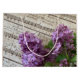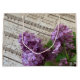 Flores roxas frescas num passado musical antigo, saco bonito para um formando, Dia de as mães, aniversário ou presente de noiva