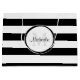 Um sólido preto e branco esperto listra o saco tamanho grande do presente. Personalize este teste padrão clássico adicionando a inicial conhecida e monogrammed de seu receptor. Este design fresco do monograma é parte da coleção preta da cor do verão dos fundamentos do partido.
