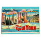 Colorfully illustrated, vintage postcard greeting from Long Island, New York. It's an old postcard!