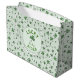 Adorável Rua verde "Lucky Baby", sacola de presente do Dia de Patrick para bebê ou menina. Possui um padrão fofo de trevos verdes e pequenos corações verdes em um pequeno fundo verde gingham. Personalizado com o nome do bebê em ambos os lados. Basta clicar em "Personalizar este modelo" na página do produto e inserir o nome do bebê.