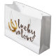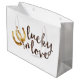 Design apresenta duas ferraduras ouros e "Lucky in Love" na cor castanho quente do outono. Coordenando acessórios disponíveis em nosso compro!