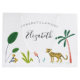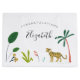 Design de chá de fraldas de Whimsical, que apresenta uma exuberante vida vegetal da selva e ilustrações de animais, incluindo tigre, papagaio, preguiça, macaco e cobra.