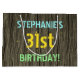 Este design de presente de aniversário divertido apresenta uma mensagem como "31º ANIVERSÁRIO DE STEPHANIE!", onde o nome pode ser personalizado. O fundo apresenta um padrão de aparência rústico, castanho e falso em grãos de madeira. O texto de mensagem personalizável apresenta cores como azul, amarelo e verde, e tem uma aparência inspirada pela de letras pintadas e estêncilhadas. Uma bolsa de presente de aniversário como esta pode ser uma maneira divertida de embrulhar um presente para alguém que comemora seus trinta anos de primeiro aniversário. [~Z0000319]