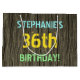 Este design de presente de aniversário divertido apresenta uma mensagem como "36º ANIVERSÁRIO DO STEPHANIE!", onde o nome pode ser personalizado. O fundo apresenta um padrão de aparência rústico, castanho e falso em grãos de madeira. O texto de mensagem personalizável apresenta cores como azul, amarelo e verde, e tem uma aparência inspirada pela de letras pintadas e estêncilhadas. Uma bolsa de presente de aniversário como esta pode ser uma forma bobo de dar um presente a alguém que comemora seus trinta e seis anos de aniversário. [~Z0000319]