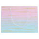 Saco de presentes com um padrão de abstrato legal. Gradiente de pasta, cor rosa e azul, com faixas finas de ouro. As faixas/linhas de ouro são uma falsa brilha dourada.