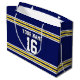 Sacola Para Presentes Grande Marinho Azul com Equipe de Stripes Brancas Amarela