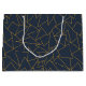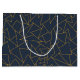 Um lindo padrão geométrico moderno com linhas de ouro no fundo azul marinho.
