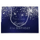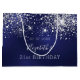 Um saco de presente para um aniversário de 21 ruas (ou qualquer idade) feminino e glamouroso. Um fundo azul profundo decorado com poeira brilhante. A cor azul é irregular. Personalize e adicione uma data, nome e idade 21. O texto: O nome é escrito em branco com um script de estilo moderno, escrito à mão
