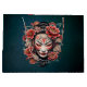 A combinação da austeridade da máscara com a beleza das flores dá ao design uma aura harmoniosa e simboliza a conexão entre homem e natureza na estética japonesa.