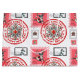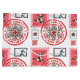 This whimsical and nostalgic collage brings together vintage postage stamp designs with a humorous medical twist, creating a standout holiday artwork. Each stamp-like panel showcases a unique element—from a Santa hat adorned with a red cross, to a cheerful gingerbread man in scrubs, and a flying reindeer wielding a stethoscope. A decorated tree made of pills and red cross symbols anchors the lower corner, offering a clever nod to the healthcare world.