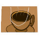 Manhãs cedo, dias chuvosos, uma xícara de café em um café confortável. O "Café, por favor!" grande design apresenta um solteiro de café a vapor num fundo castanho aconchegante num estilo retrô moderno de médio.