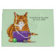 Um gato de mesa laranja com brinquedos e uma caneca de café roxa declarando que eles têm o pai mais perfeito de todos os tempos!