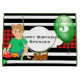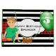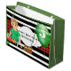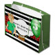 Um saco de presentes legal com riscas brancas e pretas ousadas e modernas, um padrão legal de gingham verde e preto, meninos tocando e personalizando de ambos os lados.