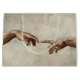 A Criação de Adão pela Pintura Masternote de Michelangelo - A Criação de Adão é uma das pinturas mais famosas do mundo, criada pelo mestre Michelangelo em Roma. A Criação de Adão é um fresco clássico que Michelangelo pintou no Vaticano de Roma, na Capela Sistina, em 1511-1512. A Criação de Adão impressão em nosso presente é uma porção do quadro fresco, mostrando toda a criação do Homem no Livro Bíblico da Gênesis, onde Deus (à direita) dá vida ao primeiro homem, Adam (à esquerda). A pintura mostra o quase toque das mãos, entre Deus e Adão. A imagem é uma pintura crônica do Renascimento. Michelangelo mostra Deus como um velho homem de cabelos brancos e barbudos brancos, vestindo uma longa roupa branca. Tanto Deus como Adão têm os braços estendidos um ao outro, como se Deus estivesse gerando uma faísca de vida no novo homem Adão. A pintura de Michelangeo mostra a semelhança do Homem com Deus, mostrando que Deus criou os humanos em sua própria imagem.
