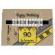 Saco especial de presente de aniversário de um ano. Exemplo mostrado é para os 90 anos - personalize-se para se adequar a outra idade e adicione seu nome. Castanho, branco, preto, amarelo, laranja e cinza. Triângulo, pontos e faixas. Desejando-lhe um aniversário muito especial e um ano maravilhoso pela frente.