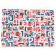 A design inspira-se na moderna arte bauhaus design, com padrão geométrico em contraste de blues e pinks