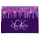 Sacola Para Presentes Grande Monograma com gotas de purpurina rosa roxa